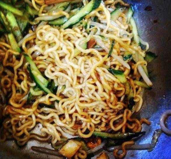 方便冷面:方便面不加料用水煮熟!放入涼水中沖涼後撈起!!加入蒜泥!麻醬!醋!胡蘿卜咸菜!黃瓜絲涼拌!口感清爽勁道!!適合夏天食用!!