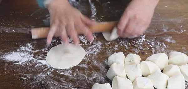 稍微放冷後再放到冰箱冷凍一個小時,發好的面體積變大,拉開裡面有豐富的蜂窩組織代表面已經發好,再撒一點幹粉,揉搓裡面的氣體,大約10分鐘之後再搓成長條,分成大小均勻的面劑,搟成邊緣薄中間厚的包子皮,再放入凍好的叉燒餡,拇指不動,左右手提拉,捏成包子。