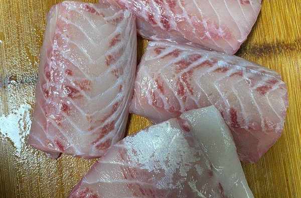 魚肉去皮,切掉紅色部分,一是紅色部分腥味重,二是影響魚丸顏色