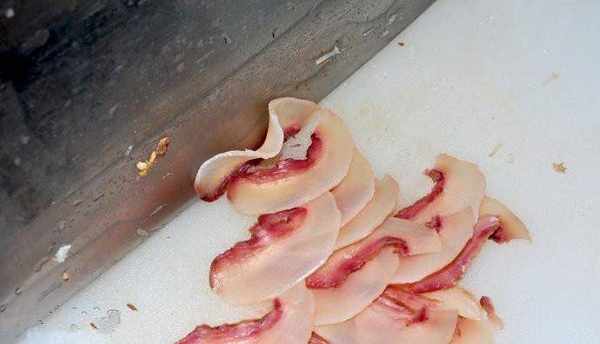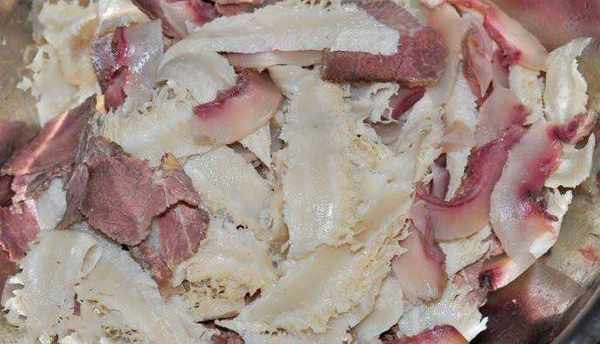 4.牛頭皮切成薄片(這個是最不好切的食材之一,很吃刀)