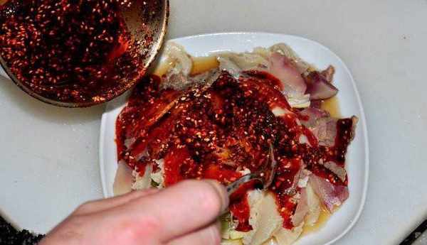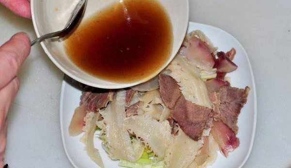 10.將調好的汁水淋在肺片上