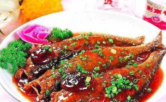 蔥香大黃魚同樣很不錯,需要準備好大黃魚1條、大蔥的蔥白一段、白胡椒粉、薑、料酒、鹽適量、生抽、魚露。把大黃魚切成段,在其中加入薑片、料酒、白胡椒粉和鹽混合,醃上30-60分鐘。把鍋燒熱之後就可以在其中倒入少量的油,等到油完全燒熱,再選擇把魚塊倒入其中。煎好一邊之後就可以翻面,然後再選擇去煎大黃魚的另一面,然後給大黃魚擺盤,還需要把大蔥白切成絲,用煎魚剩下的油,炒成蔥絲,然後在其中加入生抽、白糖以及魚露,把炒好的蔥絲撒到大黃魚上就可以瞭。