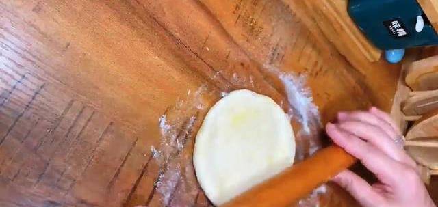 第7步:再次搟成小圓餅,其他的劑子也像這樣搟成圓餅。