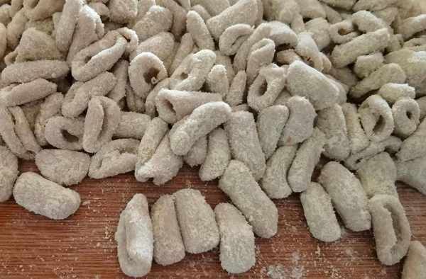面和好,軟硬都可,面也可以選白面、玉米面、蕎面,或者若幹種面摻合在一起皆可。面團放在案板上稍加按壓成餅,切四方小丁,大小以花生米粒為最佳,太大或太小,都會影響您食用時的口感。