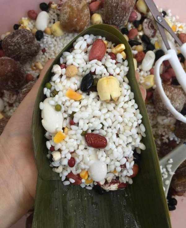 準備工作:買粽葉,棉線繩子,五花肉,咸蛋黃,糯米,各種喜歡吃的豆類等。