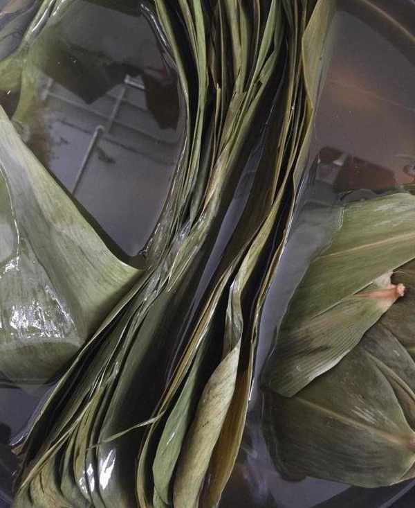 2、粽葉,用幹粽葉的話要泡半天左右,提前泡好,然後一片片清洗幹凈,註意不要劃傷手。如果趕時間的話,可以把粽葉放入大鍋中煮,這樣泡發的很快。新鮮粽葉就是清洗幹凈就可以瞭,最好也用開水煮一下,這樣包的時候不容易破,我買的有幹粽葉也有新鮮粽葉。