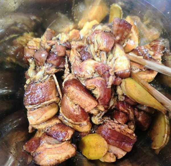 1、五花肉洗凈去皮切塊,放入大碗裡,放白糖,白胡椒粉,鹽,生抽,老抽,白酒,雞精,薑片攪拌均勻放入冰箱冷藏四小時以上,最好過夜。