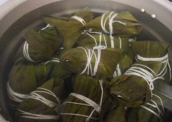 3、全部包好後放入高壓鍋中,水要蓋過粽子,大火燒開轉中小火壓七十分鐘左右即可。
