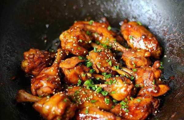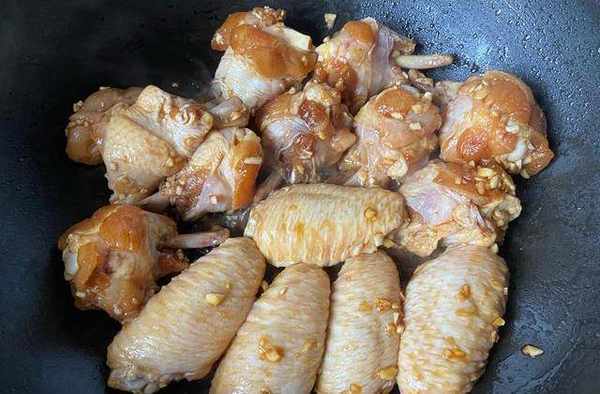所需要的材料:雞翅根9個、雞翅中5個、大蒜16瓣、蔥花適量、熟的白芝麻適量、老抽2勺半、生抽3勺、蠔油1勺、黃酒2勺、黑胡椒粉適量、水飴1勺、鹽適量