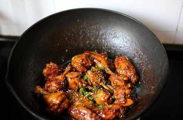 6、12分鐘後開蓋,轉大火,一邊炒一邊收汁,直到湯汁濃稠,撒上白芝麻和蔥花,就可以熄火出鍋瞭。