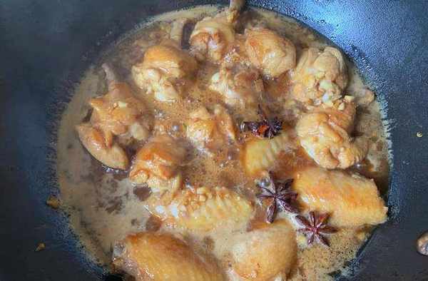 5、接著把碗內剩下的醃料汁倒入鍋內,再加入1碗水和八角,攪勻後蓋上蓋子,大火煮沸轉小火燜煮12分鐘。這裡水不需要放太多