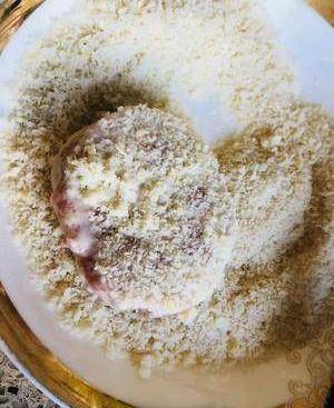 先沾面糊,在粘上面包粉。都要薄,不要太厚。鍋熱油,中火炸3分鐘左右。