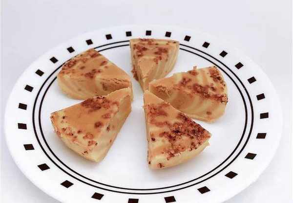 10、將米糕倒扣在盤子上完成脫模,就可以吃瞭。