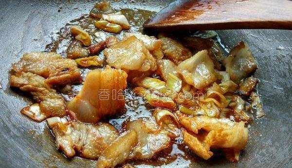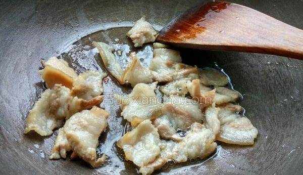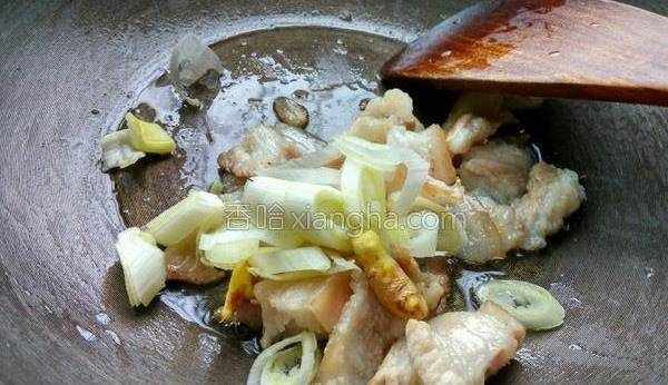 4.鍋燒熱加油,放入五花肉煸炒出油脂。
