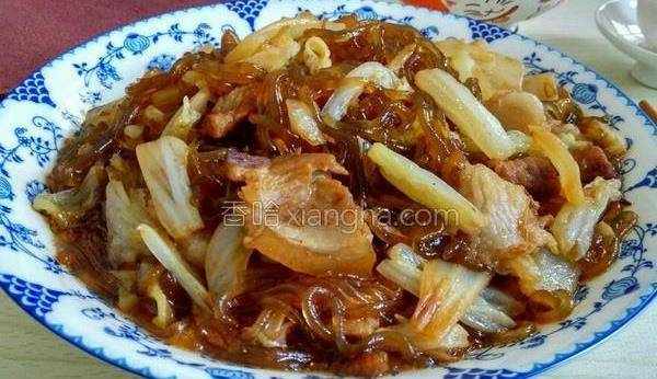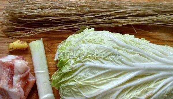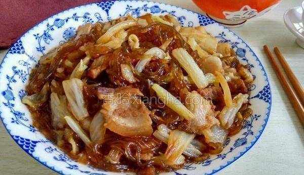 五花肉100克、粉條60克、白菜200克、花生油適量、醬油10克、鹽3克、薑3克、蔥10克、水350克