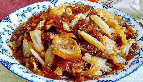 9.蓋上鍋蓋中小火慢燉,等到粉條爛瞭,加入鹽炒勻,即可出鍋。
