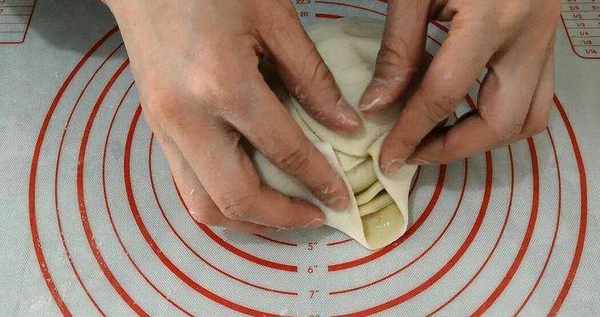 層層對折好的面團,我們收口捏嚴