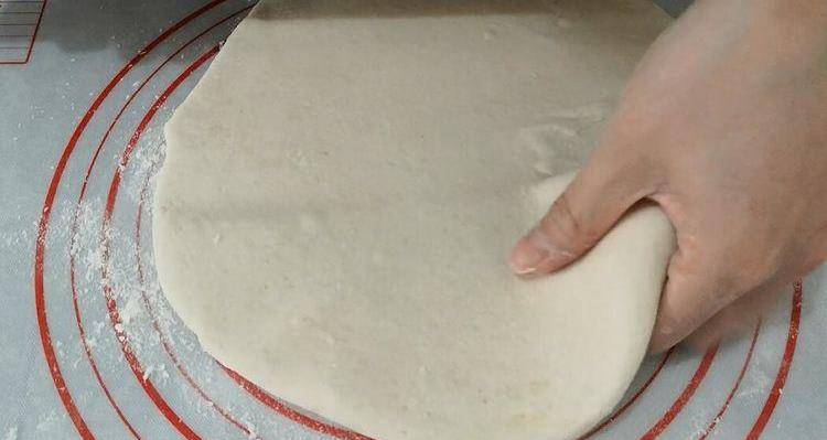 案板上撒上面粉,然後取出發酵好的面團,我們揉勻排氣