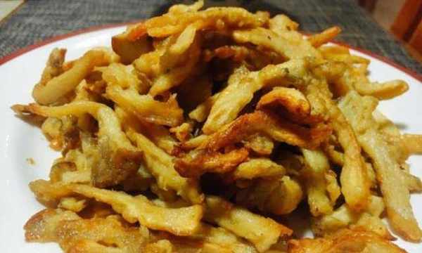 4、在鍋裡燒開油,把沾滿面粉的香菇放進去油炸,熟瞭之後,出鍋,撒上蔥花和胡椒粉即可。