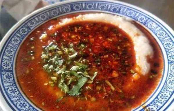 2.關中吃面最簡單省事的做法就是油潑,面片上撒上蒜末、蔥花、辣椒粉,熱油潑香,調入鹽、醬油、味精拌勻,再來幾粒大蒜即可食用。