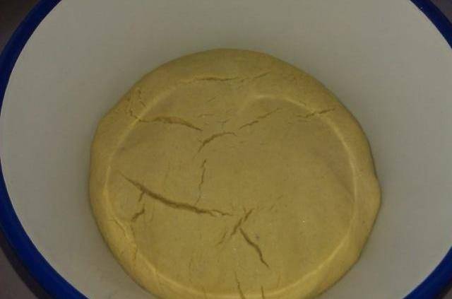 待不燙手後,加少許涼水,將面揉勻成偏硬一點的面團。蓋上保鮮膜,放在溫暖處餳發一個晚上