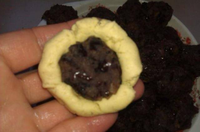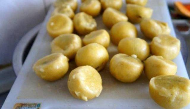 將豆餡攥成均勻的小團