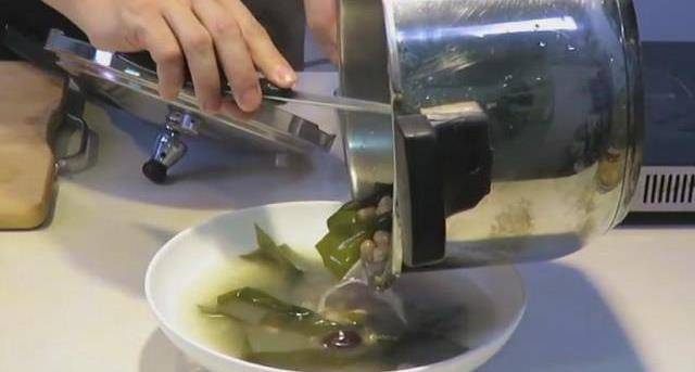 9.蓋上鍋蓋,大約壓10分鐘左右,再等氣稍微消瞭,大約再等待15分鐘,蓋子可以打開的時候,打開裝盤,這道海帶花生湯就完成瞭。