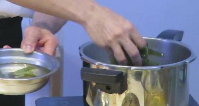 5.準備一個高壓鍋,先放入素高湯,再把海帶結放入鍋中,多洗幾次,洗個5-6次,這樣子才能把裡面的沙子洗掉。