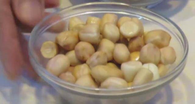 3.買回來的幹花生用水浸泡半天,就變成這個樣子。