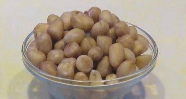 6.這是用高壓鍋壓過的花生,在壓的過程中可以加入少許的鹽巴,花生的味道更好,把它放入鍋中。