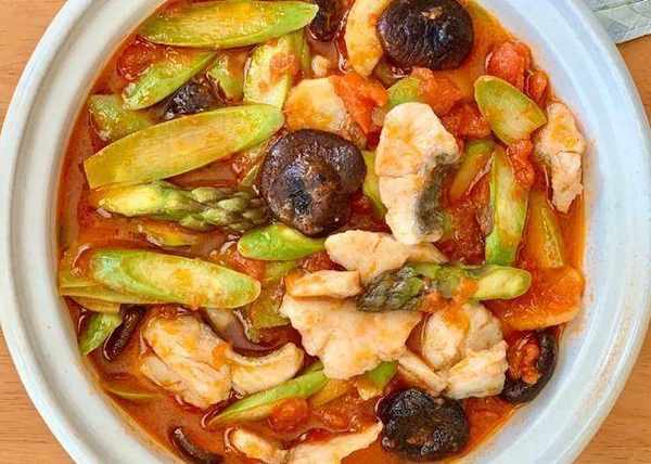 這道菜不油膩,清爽可口又略帶湯汁,會讓你夏日的不僅讓你胃口大開,而且營養更是豐富。西紅柿是不可多得的夏季好蔬果,富含的番茄紅和維生素。蘆筍更有“蔬菜之王”、“菜中蟲草”的美譽。
