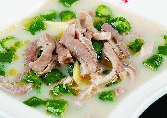 青椒燜肚條:準備食材:青椒、豬肚、薑。薑去皮,拍破。青椒洗凈後去蒂,對剖去籽,斜刀切成1厘米左右寬的絲。將豬肚和薑塊一起放入鍋中,加適量的水淹過豬肚,開火,蓋上鍋蓋煮40分鐘左右,煮軟。撈出放涼後切成手指寬的條。開火,鍋中放入食用油,將肚條倒入鍋中翻炒,炒幹水分。加入黃豆醬、白糖、花椒面、醬油,調味。倒入青椒繼續翻炒半分鐘左右,關火。撒入鹽、雞精調味,和勻。好香啊!