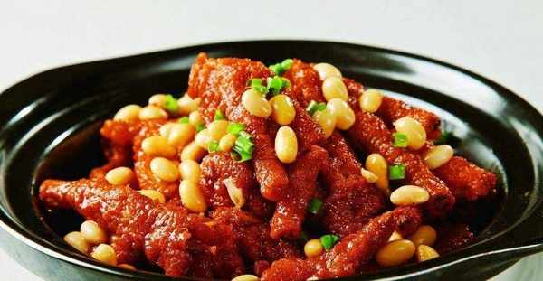 4、淋入生抽,翻炒均勻,加入白糖,翻炒均勻,撈起黃豆,放進鍋裡