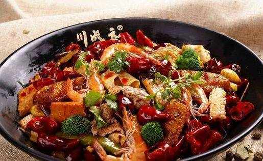 6、鍋中倒去多餘的油,留少許底油,放入蔥、薑、幹辣椒、花椒和蒜頭爆香