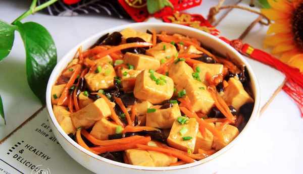 食材:嫩豆腐,木耳,胡蘿卜,蔥,大蒜