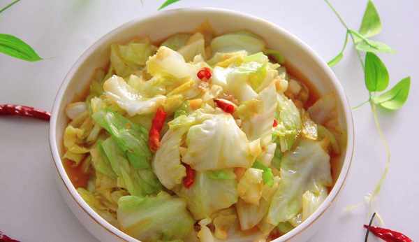 食材:包菜,花椒粒,蠔油,大蒜,幹紅辣椒,鹽