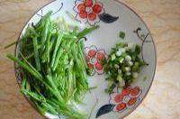 8、把熬過的蔥段加一點,吃起來很香,表面再撒上一點蔥花,不要放香菜;