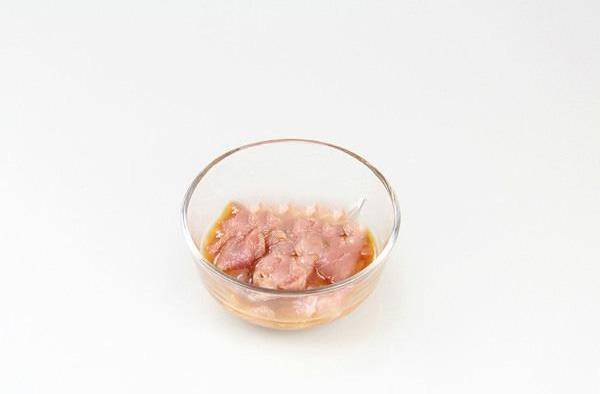步驟2:將瘦肉洗幹凈,切成薄片,用生粉、料酒和生抽醃制入味。