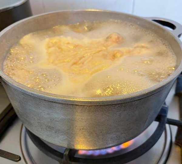 第2步、讓水沸騰三分鐘,再避開白色浮沫,把肉夾起來。