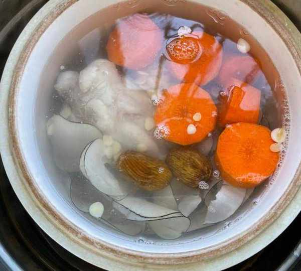 原料:鱷魚肉、瘦肉、紅蘿卜、海底椰、蜜棗、南北杏、薑、鹽。