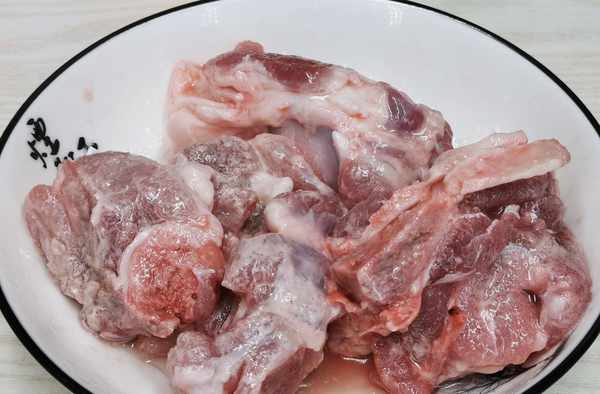 2、筒子骨加少量的鹽,雞精,油攪拌均勻,加1大勺淀粉攪拌均勻。