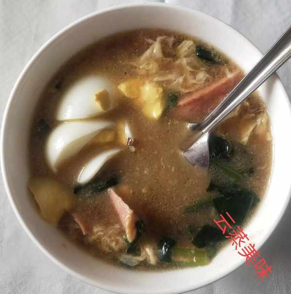 【菠菜雞蛋湯】首先我們先把菠菜摘洗幹凈,切段放在一邊備用。碗中打入幾個雞蛋,用筷子攪拌均勻,放在一邊備用。然後我們用蔥花,八角,小辣椒,爆一下鍋,加水,等水燒開,在燒水的這段時間,我們可以挖一小勺面粉,接點涼水,把它攪拌成面糊狀,放在一邊備用(勾芡用)。開鍋,我們把準備好的菠菜倒入鍋中,開鍋,開始勾芡,(有的人喜歡用淀粉勾芡,我比較喜歡用面粉做的,感覺好喝,所以這裡我們用的面粉),在勾芡的過程中我們邊倒邊在鍋裡攪拌,防止粘一塊,在倒得過程中也要註意湯的稀稠度,我們勾完芡。等開鍋我們就可以把打好的雞蛋慢慢的倒入鍋中,這個過程和勾芡是一樣的,邊倒邊攪拌,這樣打出來的雞蛋才不會成一個,等開鍋,這鍋美美的菠菜雞蛋談就做好瞭。記住要放適量的鹽。