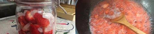 封好蓋子放冰箱冷藏一小時。一小時後,取炒鍋,把草莓倒入鍋中翻炒,把表層的白沫子去除它是草莓裡的澀素,大至熬8-10分鐘,不要太粘稠,要有顆粒不要把草莓弄碎,出鍋備用。