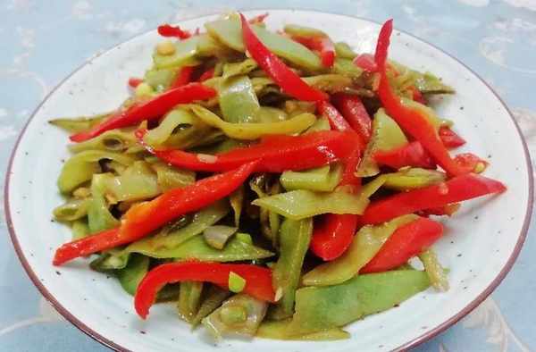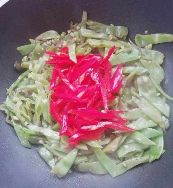 【食材準備】:紅扁豆400克,紅尖椒1個,蒜頭三瓣;鹽一小勺,雞精一小勺,生抽少許,植物油適量。