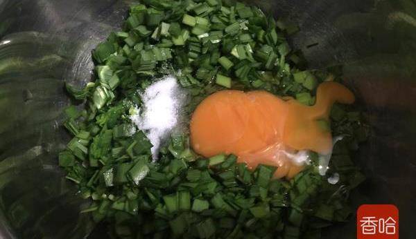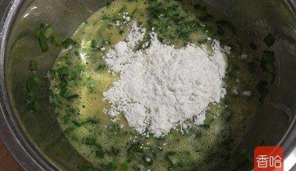 韭菜適量、雞蛋1-2個、面粉適量、鹽少許