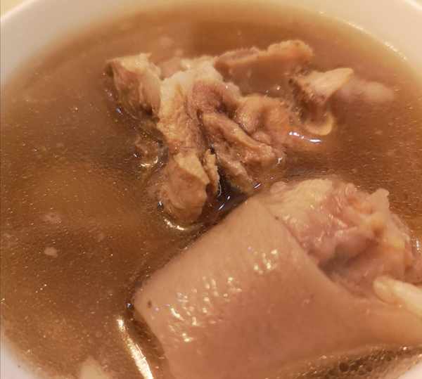 杜仲和豬尾巴燉好的湯,雖然帶有一點點藥味,但是味道還是很容易讓人能夠接受的。湯裡加入的花生米,增加瞭湯的甜味和香味。豬尾巴軟糯、鮮香,吃起來口感非常不錯。