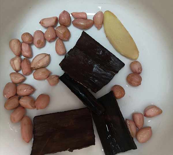 所以,在我以後使用杜仲燉豬尾巴的配料表裡面,就把薑給刪除瞭。直接將杜仲和花生米用清水沖洗一下,然後放在燉盅裡面,和豬尾巴一起燉就可以瞭。