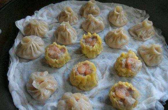 做法:豬肉餡加鹽、雞精、少量醬油調味,胡蘿卜和泡發的香菇切小丁備用,鍋內倒入適量食用油,鍋熱後把豬肉餡倒下鍋炒出香味後再把香菇丁,胡蘿卜丁倒入一起炒,炒的差不多時把煮好的糯米到進去一起翻炒,快好是加醬油調色,加鹽調味,炒均勻後盛出,把餃皮的邊用搟面杖搟薄些,然後開始包,因為是第一次包不知道包的對不對,反正就是照著外面賣的包的,電飯鍋水燒滾後放入包好的燒麥,蒸個5*6分鐘就可以啦。