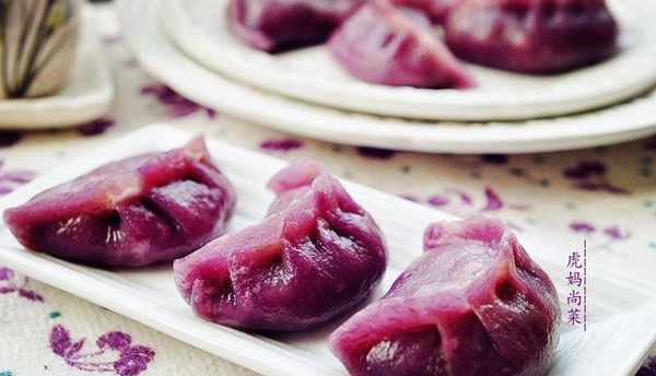 皮料:熟紫薯110克,面粉190克,水90克。