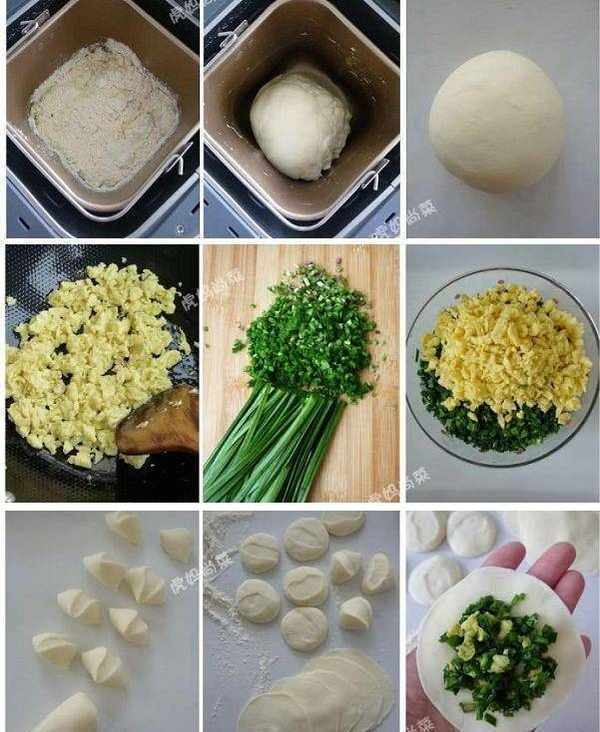 餡料:黃芽韭菜300克,小雞蛋4個,花生油25克,鹽3克。